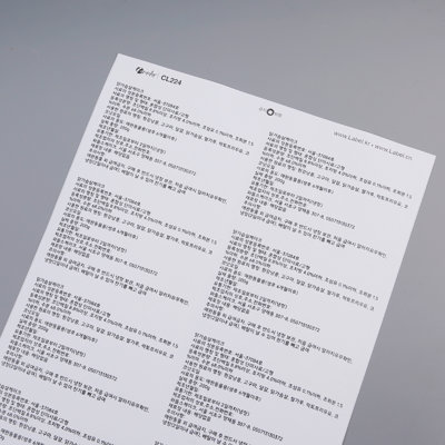 텍스트, 이미지, 도형, 바코드 등을 쉽게 출력 할 수 있으며 엑셀파일 등의 연동도 가능합니다. 라벨 모양대로 이미 칼선이 있기 때문에 출력 후 바로 떼어서 사용 하시면 됩니다.